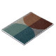 Patrón geométrico abstracto. Formas texturadas azules y marrones sobre un fondo gris.