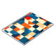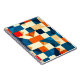 Patrón geométrico abstracto colorido con tonos vivos de azul, naranja y crema, evocando el estilo y el diseño artístico moderno. La composición presenta simetría y equilibrio estético, perfecto para diversas aplicaciones de diseño.