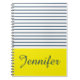 Patrón rayado moderno blanco, azul y amarillo con nombre personalizado