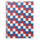 Bloc de notas espiral único y elegante con un diseño de cuadros de color rojo blanco y azul.