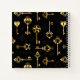 Patrón incomparable de llaves antiguas, doradas y de silueta sobre fondo negro.