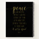 Paz te dejo, paz te doy. No te doy como el mundo da. No dejes que tus corazones se molesten y no tengas miedo, John 14:27. Cuaderno de escritura en espiral, cita de la Biblia Inspiradora, regalo cristiano. Oro (Se puede personalizar el color de fondo en ambos lados).