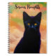 La parte delantera de este cuaderno de espiral de diario muestra mi fotografía original de un gato negro con una mirada seria. La imagen se procesó en un estilo Pop-Art para un estilo artístico. Las palabras 'Pensamientos serios' están en la imagen; sin embargo, puedes cambiar las palabras para personalizarla como quieras. Escribir listas o pensamientos es una buena manera de seguirles la pista y también sería un buen regalo para cualquier amante del gato.