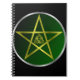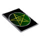 Un pentáculo de oro/pentagrama sobre un fondo verde con una triqueta en el corazón del pentáculo. Encantador. El pentáculo y el triquetra han sido durante mucho tiempo símbolos del sistema de creencias Wiccan y del neopaganismo.