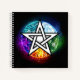 Pentagrama luminoso de dibujo artístico con cinco elementos mágicos, agua, tierra, fuego, astral, aire sobre fondo negro. Pentagrama de Wiccan. Wicca