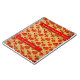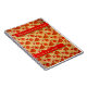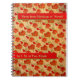 Este portátil de espiral versátil de tamaño conveniente presenta la pintura digital original de Leslie Sigal Javorek que emula el aspecto de Gold Shantung que parece tener peonías de Tango Rojo pintadas a mano. En bandas de rojo, 2 campos de texto personalizados para título, su nombre u otra información.