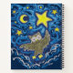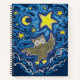 Colores arremolinados bailan en el caprichoso cielo nocturno con la luna, las estrellas y un búho. Por Paxdomino