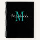 Pequeña receta de cocina en monograma negro organizador de bloc de notas en espiral. Libro de notas personalizado para su cocina secreta y recetas de cocción. Monograma de nombre blanco y negro con acento azul turquesa. Agregue su propio nombre y título personalizado. Plantilla de tipografía de guión elegante. Elegante idea de regalo de cumpleaños o Navidades para mamá, hermana, tía, abuela, amiga, compañera de trabajo, hija, chef, cocinera, novia boda, dama de honor, etc. Personalizable. Elija entre diferentes opciones de forro interno. También se puede utilizar para dibujar o como diario.
