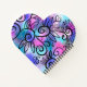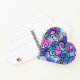 Un pájaro divertido, bonitos elementos florales y un pequeño corazón sobre un fondo rosa, violeta y turquesa.