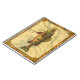 Esta impresión ilustra una imagen artística de un pez perca amarillo. El fondo muestra un mapa geográfico vintage en tonos beige claro. El marco marrón se asemeja al antiguo patrón de madera con flores amarillas-rojas en los bordes. ¡Una gran adición a tu colección de pesca!