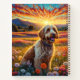 Perro Golden Doodle en un hermoso campo de flores al atardecer. Rompecabezas, rompecabezas en latas, planificadores, cuadernos con este diseño en mis tiendas. Agrega texto para personalizar.. Muchos diseños de mascotas y paisajes en mis tiendas. Agrega este diseño a otros productos. Agrega texto.
