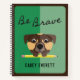 Este Cuaderno Sé Valiente es para aquellos que acogen la aventura y son valientes cuando se enfrentan a la incertidumbre. El diseño presenta un perro de color Mocha que sostiene un lápiz amarillo sobre un fondo verde esmeralda de dos tonos. El estilo de ilustración simple de este diario proporciona un aspecto moderno perfecto para estudiantes y educadores. Agrega tu nombre en la portada para hacerlo tuyo. ¡Sé valiente!