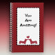 Personalice/personalizar el mensaje en la parte delantera de este cuaderno caprichoso, personalizado, en espiral. Deja el texto tal como está, o escribe un mensaje especial a alguien, y dalo como un regalo. O escribir el nombre de alguien o algo simple como "Journal". No importa qué, este es un portátil divertido para que cualquiera lo reciba o lo use. Cuenta con dos dachshunds rojos y personalizados que se enfrentan entre sí. Un corazón está en el medio por encima de sus cabezas. Los perros están enmarcados por un rectángulo blanco con un borde blanco, desvanecido y negro que ayuda a enmarcar el diseño y tu mensaje contra el fondo rojo.