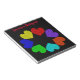 Esta increíble libreta presenta una imagen creada digitalmente de un círculo de corazones de amor. Cada corazón es de un color diferente del arcoíris. Los corazones rojo, naranja, amarillo, verde, azul, índigo y violeta son una forma divertida y brillante de expresar tu amor por un novio, novia, esposo o esposa. El fondo es negro para crear un impacto máximo. Hay texto personalizable en la parte superior que te permite personalizar esta libreta para ti mismo o convertirla en un gran regalo para alguien más.