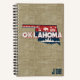 El bloc de notas de la cuadrícula de aspecto rústico presenta una silueta de estado de Oklahoma de estilo retro sobre un fondo falso de burlap. Personalización con monograma o nombre