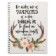 Esta cita de la biblia personalizó características del cuaderno el 18:33 del salmo del verso. La imagen tiene una mirada y una sensación del boho. He utilizado dos fuentes del estilo del cepillo para el verso y una imagen de la acuarela en un fondo explorado del papel de la acuarela. El fondo está de blanco y la imagen consiste en astas, un arreglo floral y una pluma. Este cuaderno personalizado cita de la biblia está listo para ser personalizado.