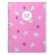 Patrón de guijarros rosados dibujados a mano con cráneos y arañas, perfecto para un cuaderno de espiral femenino de Halloween de coqueta personalizado con tu propia inicial.