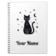 Mantente organizado con estilo con este cuaderno personalizado de gato negro. Con un diseño elegante de gato negro con un corazón morado místico, luna creciente y estrellas, es la combinación perfecta de lindo y misterioso. Ideal para escribir, la escuela, el trabajo o como un regalo considerado para amantes de los gatos y fanáticos de la estética de bruja. ¡Personalízalo con tu nombre para hacerlo único!