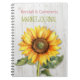 Girasol y madera, diario de jardín o mercado para personalizar con nombre o nombres. Fondo ligero de tablas de madera verticales con una imagen grande de girasol amarillo. Incluye un título, como "diario de mercado" y lleva un registro de fechas, horas, ventas, pedidos o cualquier cosa que deba ser escrita.