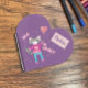 Un cuaderno morado con forma de corazón para que los niños lo regalen el Día de San Valentín. Personalízalo con el nombre de tu hijo.