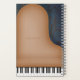 Este diseño de cuaderno es un ilustracion estilizado de piano de cola marrón rodeado de símbolos musicales, perfecto para llevar a clases de música, ensayos o clases.