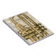 Cuaderno musical de Guay con una obra de arte de una trompeta dorada. Personaliza con tu nombre.