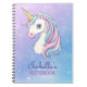 Un cuaderno mágico con un lindo unicornio, un arcoiris y un diseño morado, personalizable con tu nombre. ¡Perfecto para chicas que aman el brillo, la creatividad y la diversión!
