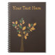 El cuaderno espiral marrón del diseñador que ofrece un árbol con diverso color se va. Perfeccione para tomar notas o escribir un diario o un diario, los etc. personalizan con su nombre, iniciales o cualquier texto que usted quiera.