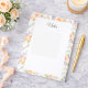 Agrega belleza y organización a tu rutina diaria con este elegante bloc de notas de notas florales pastel. Con rosas melocotón suaves, flores de lavanda y un delicado patrón de chevron verde, este diseño aporta un toque fresco y femenino a tu escritorio, cocina o espacio de trabajo.