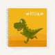 La parte delantera de este cuaderno incluye un ilustracion de la tierna caricatura Dinosaurio y un nombre personalizado. En la parte posterior del cuaderno se encuentra un Ilustracion del bosque Jurásico y el sol prehistórico caliente. Todo está diseñado en colores cálidos: amarillo, naranja y verde. Personalice el nombre del niño en la esquina superior derecha de la portada. Gran adición para el nuevo año escolar. Si necesitas ayuda para la personalización de este cuaderno, no dudes en contactarme a través de Zazzle.