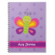 Cuaderno personalizado que ofrece una mariposa colorida con un fondo floral púrpura hermoso. Diseño lindo y de la diversión para el special para los chicas. Regalo con monograma de encargo.