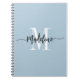 Elegante y moderno bloc de notas regalo con tu nombre y monograma personalizados en un moderno diseño de caligrafía de escritura con letras a mano en minimalista azul y negro polvoriento, este diseño basado en la tipografía hace un gran regalo para compañeros de trabajo, profesores, entrenadores, novias, novias, esposas, hijas o cualquier otro trabajo o miembro de la familia! Ideal para la decoración de oficina o casa, este libro de notas de moda hace un regalo divertido y elegante para cualquier cumpleaños, boda o ducha de novia.
