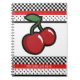 Cuaderno Retro de Cerezas Rojas Rojas Negro y Blanco. Personalizar el frente con o sin texto.
