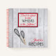 Este divertido cuaderno de recetas rústico tiene una tipografía roja y negra que dice "No tengas miedo de tomar whiskys en la cocina", bordeada por un adorno rojo y negro. En la parte de abajo hay un par de susurros en un marco rústico de madera descolorida. La esquina inferior derecha dice Recetas y lo personalizas justo encima con tu nombre.