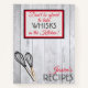 Este divertido cuaderno de recetas rústico tiene una tipografía roja y negra que dice "No tengas miedo de tomar whiskys en la cocina", bordeada por un adorno rojo y negro. En la parte de abajo hay un par de susurros en un marco rústico de madera descolorida. La esquina inferior derecha dice Recetas y lo personalizas justo encima con tu nombre.