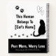Show off your love for your cat with this adorable personalized spiral notebook! Featuring a cute black cat, paw prints, and two small line art hearts, this design proudly says: