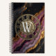 Be ready whenever inspiration strikes with this deluxe spiral notebook, designed for smooth writing, sketching, and note-taking. Featuring high-quality paper, it delivers an effortless writing experience for ideas, lists, drawings, and everyday notes. Durable and practical, this notebook is perfect for school, work, or creative projects, making it a reliable companion for staying organized and inspired. Centre has a steampunk style metallic luxury luster dialing numbers from 1 to 12 of a clock. The monogram and the shimmering background of pink agate stone can be personalized. Replace the monogram and the background with your own artwork.