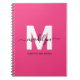 Personalized Elegant Modern Magenta Hot Pink Script Name Initial Monogram Spiral Notebook. This fun and vibrant notebook features a bold magenta hot pink background with a clean white initial, paired with your name in smooth black script for a striking, modern look. Below the initial, the full first and last name appears in a sleek font, creating a polished and eye-catching design.