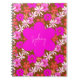 Pink flowers personalized notebook journal. Hand-drawn funky floral pattern in shades of pin on a brown background, has a big pink flower in the center for a name. Perfect for a teenage daughter to use as a journal or school classwork.