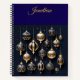 Celebrate the season in style with this elegant personalized vintage navy blue and gold Christmas spiral notebook. Beautifully detailed with festive designs — from glowing Christmas bulbs and golden roses with blue leaves to a cozy fireside scene with stockings — this notebook brings a touch of warmth and sophistication to your holiday stationery. A customizable name area at the top lets you make it truly your own or create a thoughtful personalized gift for someone special. Perfect for journaling, holiday planning, or capturing Christmas memories in timeless elegance.
