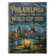 A vibrant depiction of Philadelphia with a Van Gogh-inspired sky. Prominent text announces the city as a host for the World Cup 2026.