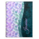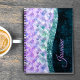 Haz que el regreso a la escuela sea divertido con este Cuaderno Personalizado Lindo. Está diseñado con una elegante piel de sirena femenina con brillo falso iridiscente en turquesa, púrpura y plata.