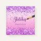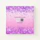 Fondo de degradado rosa. Decorada con confeti rosa. Personalice y agregue un nombre, El título: cuaderno de bocetos escrito con un estilo de escritura con letras a mano y moderno con chispas y un pincel. Letras de color púrpura. Un cuaderno para dibujos, bocetos, notas y deberes escolares.
