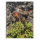 Flores de pincel rojas en el bosque de la cuenca de la lava en el centro de Oregón. Los colores llamativos destacan contra la roca lava. Foto tomada en el verano de 2018.