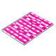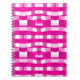 This notebook features a striking geometric block pattern in alternating shades of pink, magenta, and white, creating a dynamic, contemporary design with a subtle three‑dimensional effect.