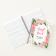This fun and whimsical wedding guest book notebook features watercolor pink roses and foliage on a gold geometric frame. The text combines handwritten script and serif fonts for a stylish and modern look. This is perfect for a spring or summer rustic wedding.