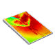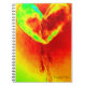 Cuaderno espiral brillante del naranja, rojo y amarillo. Imagen pintada a mano de un corazón sangrante en la cubierta. Perfeccione para escribir sus pensamientos rápidamente como diario, notas de la escuela o como regalo.