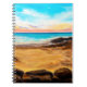 Cuaderno pintura al óleo de una hermosa puesta de sol dorad