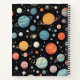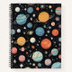 Un conjunto de planetas de colores brillantes que orbitan en un fondo negro, creando un patrón cósmico dinámico y colorido.
