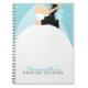 El diario nupcial de encargo que ofrece un ilustracion de novia y del novio en un damasco modela el fondo